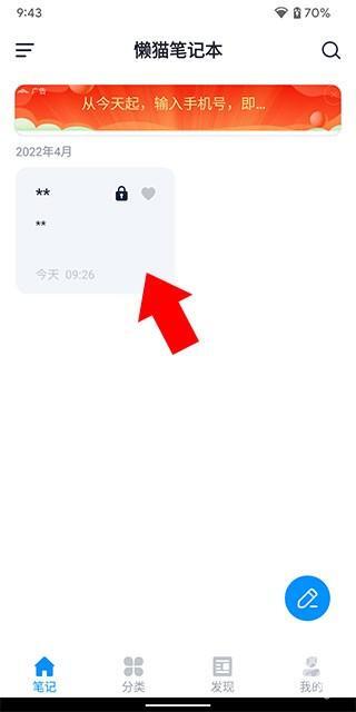 4、记录笔记:记录起来十分便捷,日常的随想随笔都能轻松完成,还能通过加锁功能保护隐私。