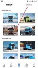 1、在三一重卡的首页界面,点击底部导航栏里的【购车】选项,就能进入车辆选购的相关页面。