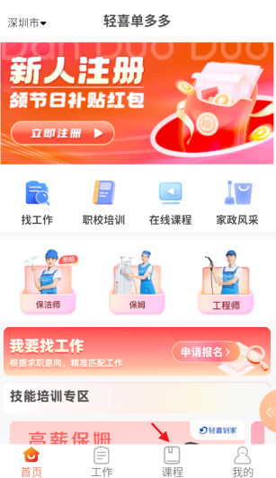 轻喜单多多深耕家政服务行业,专注为从业者搭建双体系平台。通过构建个人履历信用与职业成长体系,帮助从业者树立专业形象、规划职业发展路径。平台每日提供大量优质就业机会,借助首页、接单、课程、我的四大核心功能板块,凭借智能高效、安全便捷的技术架构,让操作简单易懂、信息精准传递。