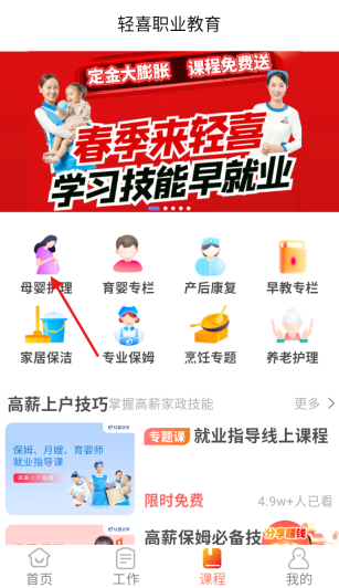 3、课程学习:点击“课程”板块,依据自身实际需求挑选合适的培训内容,借助视频学习与课后练习相结合的方式,有效提升家政服务技能。
