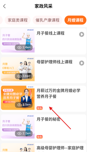 3、在母婴护理课程列表里,认真浏览各课程的介绍内容,选择自己感兴趣的课程并点击进入其详情页面。