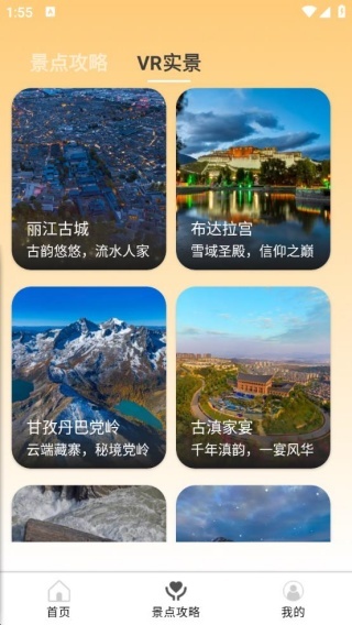 3、VR实景功能,能够让用户查看丽江古城、布达拉宫、古滇家宴等场景的真实景色。