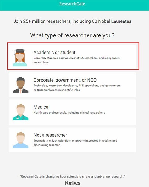 1、首先进入researchgate ,首先要选择自己的身份
