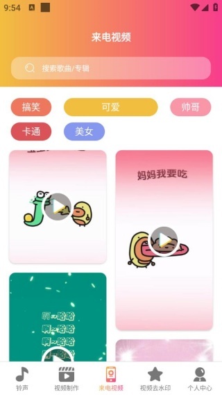 4、来电视频设有详尽的分类,你可以依据个人喜好挑选来电视频,助力你更好地打造专属来电效果。