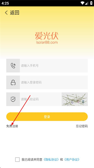 2、在登录页面,点击免费注册选项,可进入新用户注册页面。