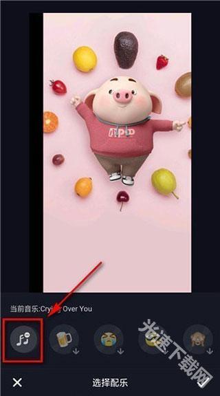 7、在页面下方,我们既能挑选一些欢快的小音乐,也能够点击【音乐图标】。