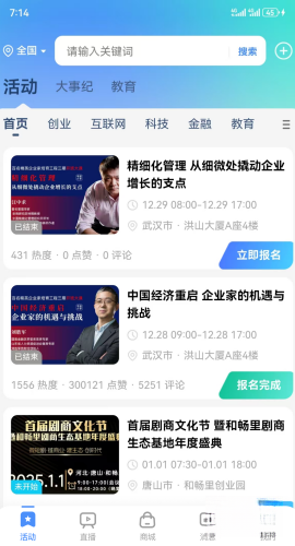 这款软件的首页会向用户推荐当下最新的各类企业职场工作相关活动,帮助你直接、清晰地掌握当下的流行趋势。