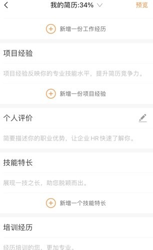 3、最后完善我们的个人项目经验,培训经历等
