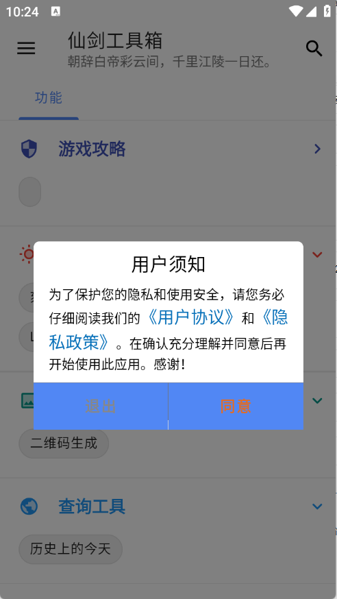 首先,在3G游戏网的仙剑工具箱中,同意相关的隐私政策和用户协议。