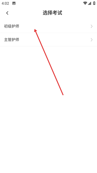1、在【选择考试】页面点击【初级护师】选项。