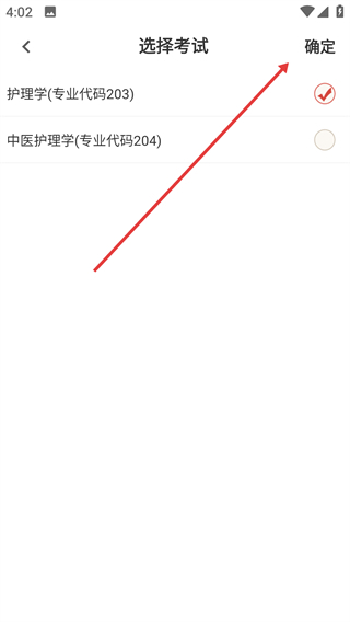 2、选中【护理学(专业代码203)】这一选项,然后点击【确定】按钮。