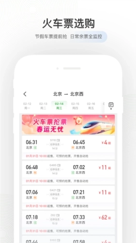 3、出票提醒:无论通过哪种渠道购票,都会收到提醒,让您第一时间掌握行程信息;