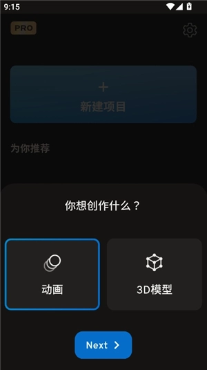 1、在本页面找到Prisma3D中文版,完成安装并打开应用后,先选择你想要创作的类型,例如点击“3d模型”选项,接着进行下一步操作。