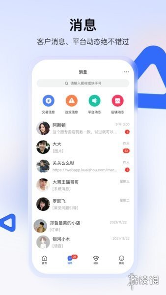 1. 实时推送交易信息、平台动态、店铺状态以及违规预警,让商家可以在第一时间获取重要资讯,并及时做出响应。