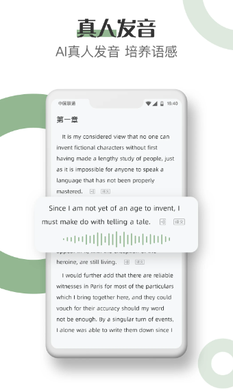 3、【真人发音】借助神经网络AI学习技术,呈现地道纯正的英式与美式发音,助力纠正发音偏差,让你仿若置身真实的英文环境之中。