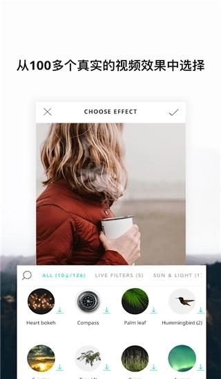 2、挑选一个你钟爱的、并且觉得契合你图片的效果。目前,我们的应用程序内已有超100种效果,且还在持续新增更多效果。