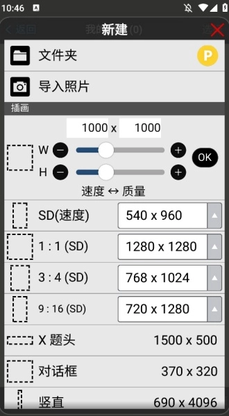 2、点击创建新画布,选择导入照片。