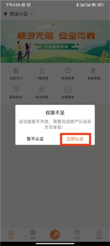 2、然后会弹出权限不足,点击立即认证即可;