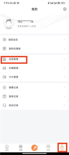 3、当然你也可以在我的页面中,点击住房管理;