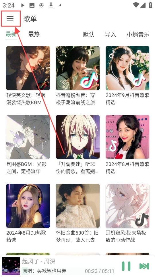 5、点击右上角的“歌单”按钮,即可自定义浏览海量丰富的歌单内容。