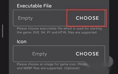 6、第四个是游戏图标,同样可以不填,直接点击最下方的“ADD”即可。
