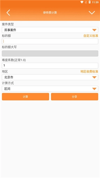 5、软件还为用户提供律师计算费功能,用户只需要输入自己的标的额即可进行计算。