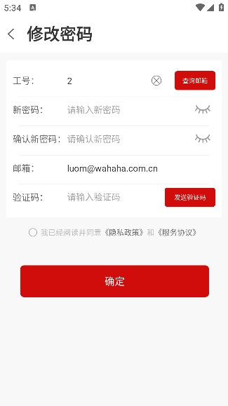 2.接着输入工号、新密码、邮箱地址等相关信息,点击确定按钮就能完成密码重置操作