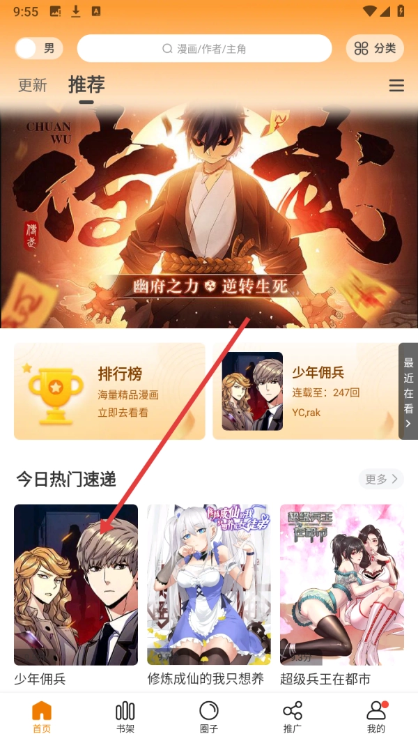 在首页点击【感兴趣的漫画】,进入作品详情页面。