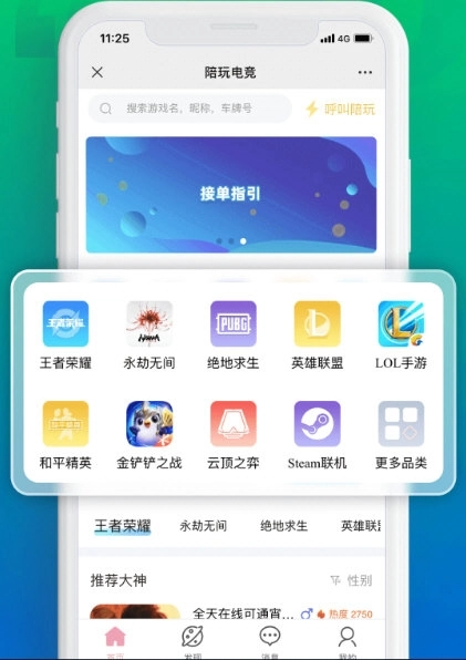 1、陪玩电竞涵盖多种陪玩类型,用户能够在此寻找大神带领自己。