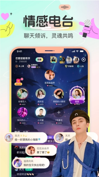 创新交友新玩法:语音连麦实时畅聊、点歌合唱共谱旋律、游戏峡谷并肩作战,丰富多元的趣味互动让你的交友过程充满新鲜感。