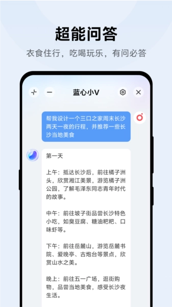 多场景问答服务:从生活常识到专业领域的疑问,蓝心小V都能提供准确而详尽的回答,成为用户生活与工作中的得力助手。