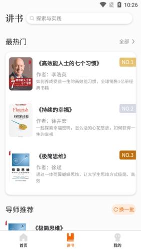 讲书以书籍讲解为核心,借助音频、视频、图文等多元形式呈现内容,由知行合一读书内容团队对各类精选书籍进行提炼,用40分钟时间讲解一本好书。