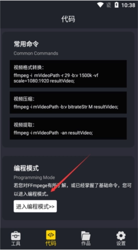 3、进入编程模式后,用户可通过代码编辑来转换视频,从而提升操作效率。