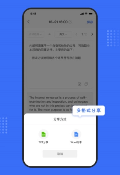 4、稍作等待,数秒后图片中的文字内容便会被提取出来,识别准确率可达99%。此外,你还能一键进行编辑、翻译、复制操作,也可以选择保存或导出。