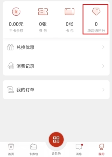 1、在我的页面中点击华润通积分按钮;