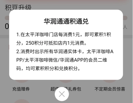 在太平洋咖啡门店,每消费1元就能累积1积分,而250积分可以抵扣店内1元的消费。