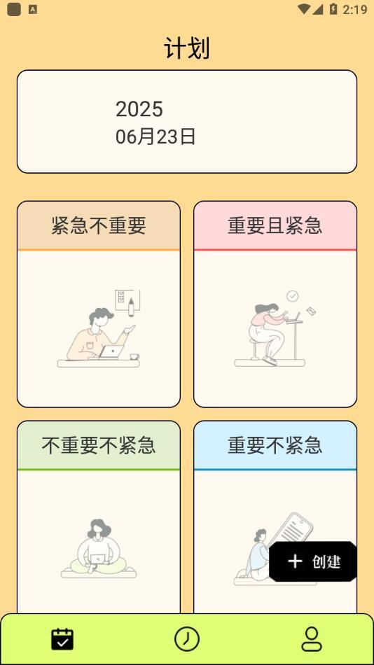 1、支持挑选任务分类,填写计划内容、设定完成期限,结合四象限标记,实现个性化任务创建。