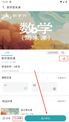 4、进入详情页,点击、底部进行收藏或加入学习。