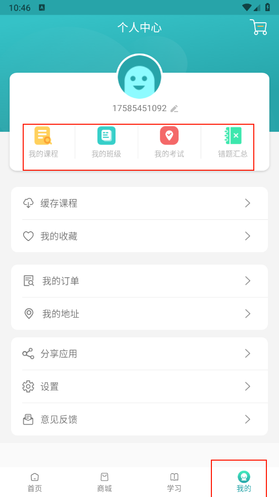 5、进入“我的”板块后,可进行收藏查看、错题汇总等操作。