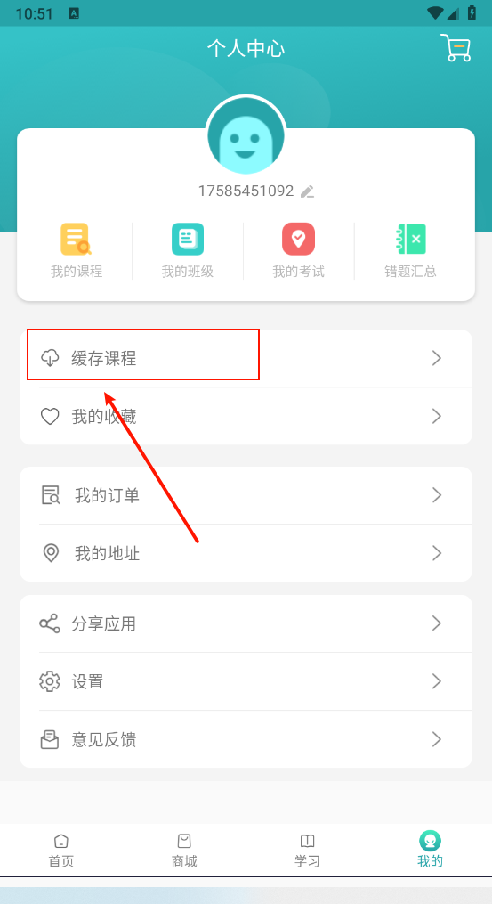 4、回到“我的”板块,点击“缓存课程”就能开展离线学习。