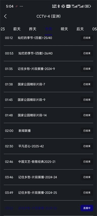 4、当然,软件内肯定有节目单,在这里能看到xxx节目是否正在直播,以及何时结束。