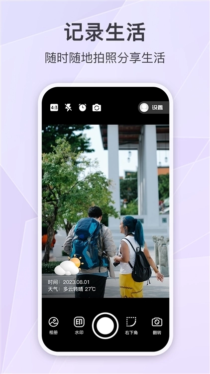 核心功能可一键直达,水印设置与拍摄操作步骤简单易懂,无需复杂学习过程,新手也能快速上手,有效节省操作时间。