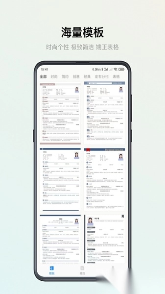 所有模板都支持排版调整,一键生成简洁大方的个人简历;