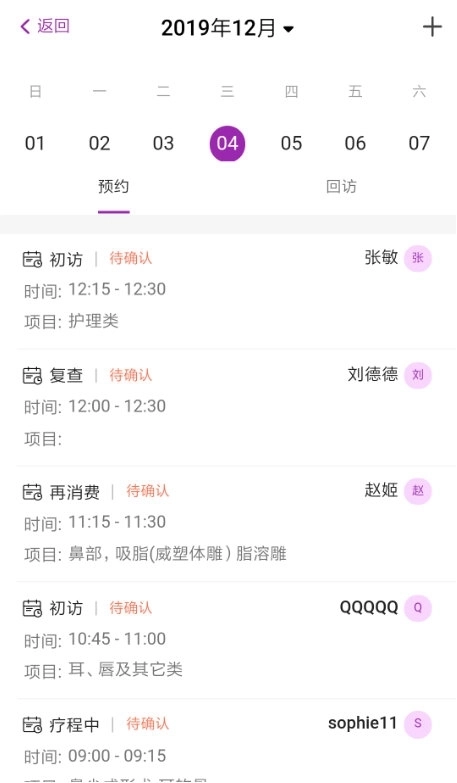 2、在这里,用户能够查看不同日期对应的预约信息,以此为客户提供更优质的服务;