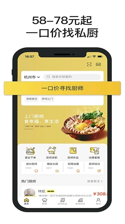 3、专业服务:厨师资源需经过严格筛选与实名认证,为客户提供专业的上门服务。