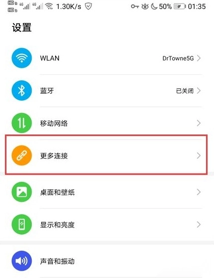 打开手机的设置页面,找到“更多连接”选项并点击进入,具体操作可参照下图: