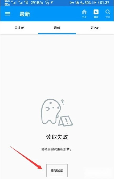添加操作完成后,回到pixiv应用里,点击“重新加载”按钮,具体操作可参考图示: