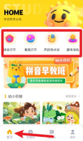 1. 打开后,点击首页上“拼音识字”这类图标,就能进入对应的识字、字母认读或者填色等互动学习模块。