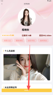 3、技师详情页的结构清晰明了,从业资格认证等专业信息均直接展示,有效提升了服务的可信度。