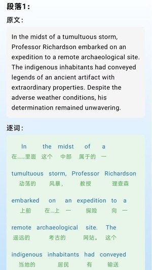 1、在翻译页面输入文本就能快速完成翻译,此外还支持逐词翻译功能。